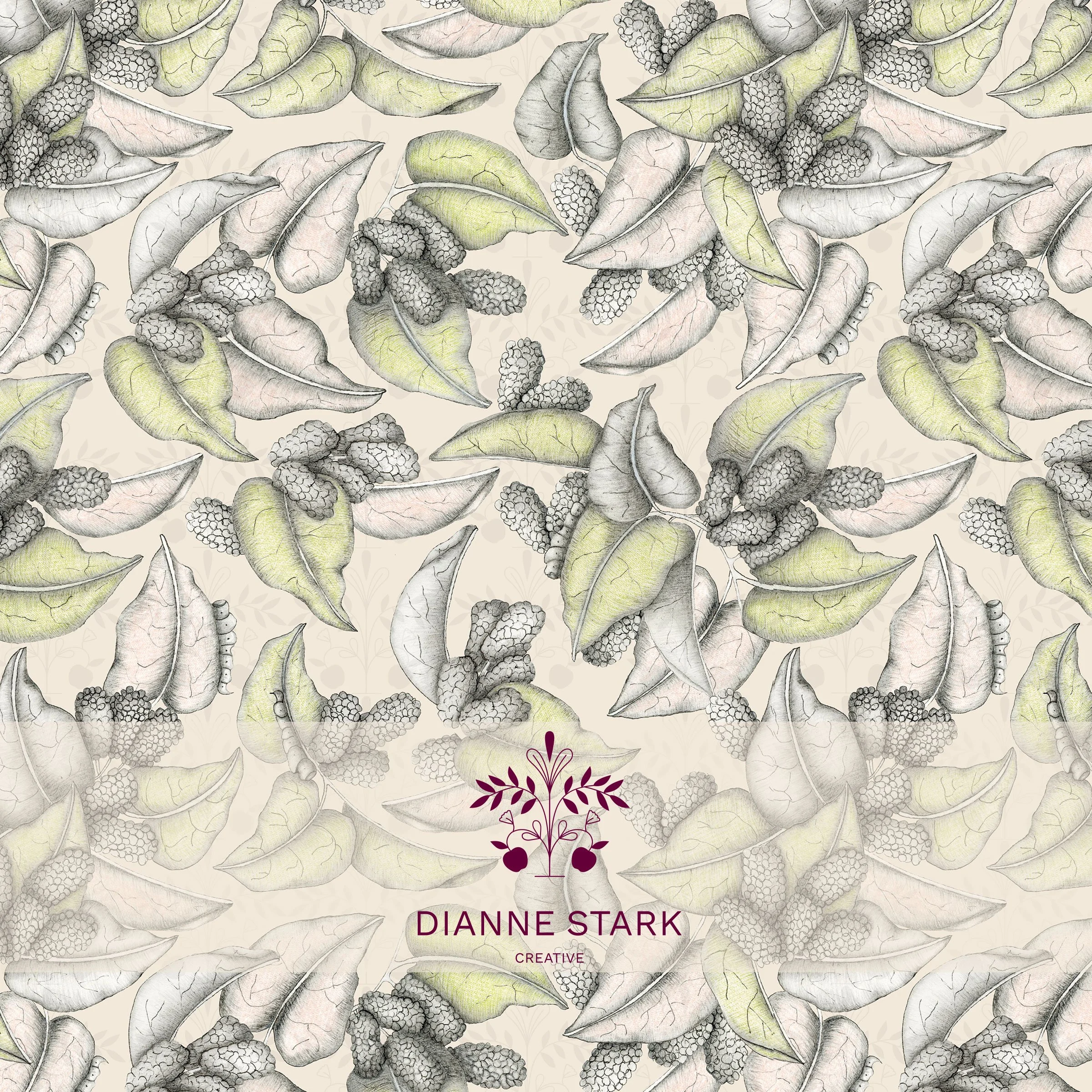 MULBERRYThe story behind my mulberry design comes from my early years on a farm, where towering mulberry trees grew near abandoned chicken runs. I’d spend hours picking their fruit from overhanging branches, often ending up with fingers stained deep purple. Mulberry